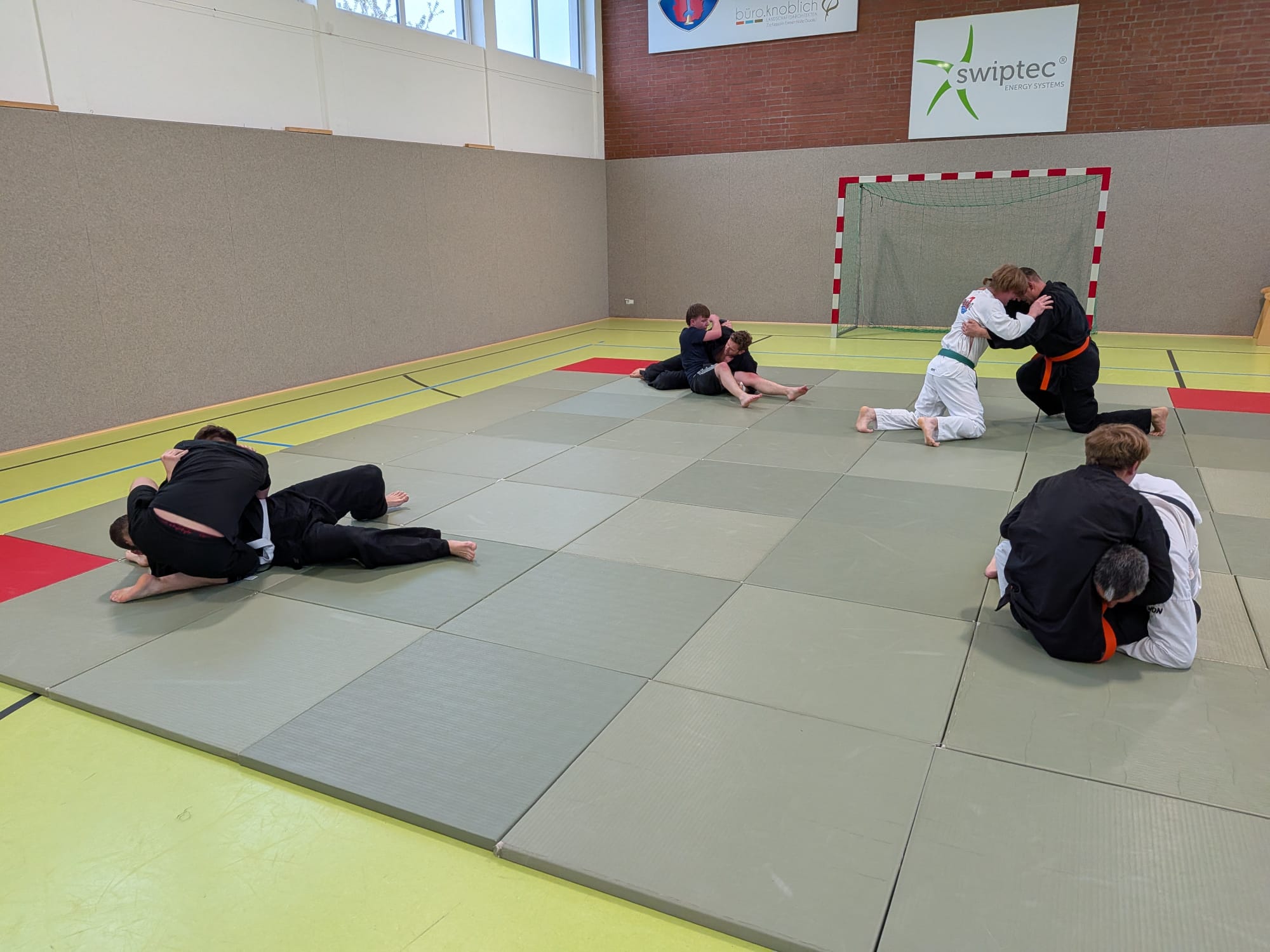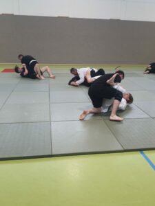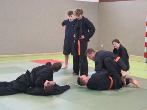 Das Wochenende bot ein breites Spektrum an Trainingseinheiten zu unterschiedlichsten Themengebieten der Kampfkunst. Als Referenten waren Volker Gössling, Nadine Gössling und Marcus Frenkel vom Hapkido sowie Markus Hahner, Christopher Spickhoff vom Jiu Jitsu anwesend.