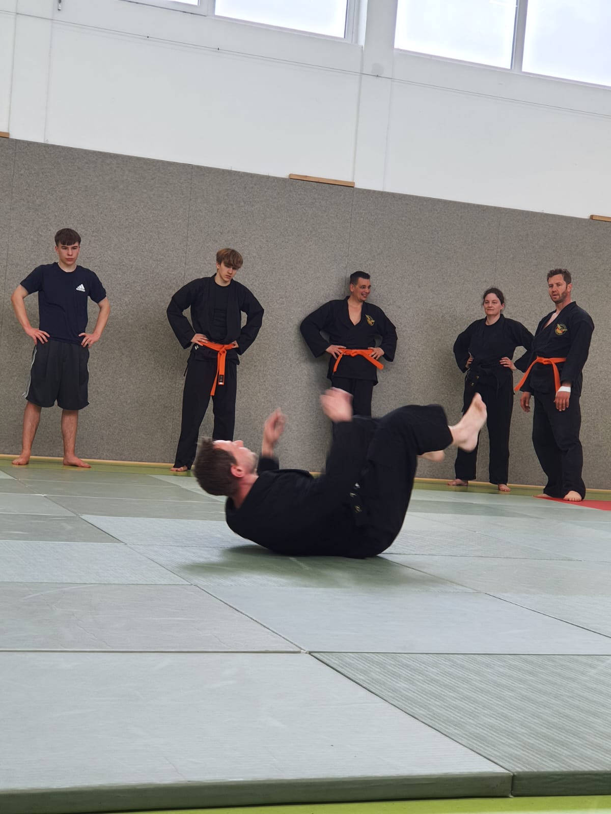 4 Erwachsene haben sich der Herausforderung gestellt und tragen nun stolz den orangenen Gürtel (5. Kup).